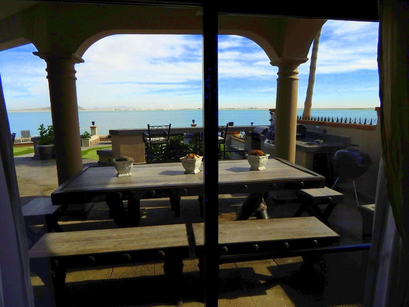 Experience Bliss By The Bay, a luxurious waterfront retreat in Cholla Bay with breathtaking panoramic bay and mountain views. This unique 4-bedroom, 4-bath home features custom alder wood doors, a chef’s kitchen with professional appliances, handcrafted boveda ceiling with hidden accent lighting, and a private courtyard. Enjoy beach access, a 9-hole putting green, multiple fire pits, bocce ball, and a 2-car garage. Perfect for co-ownership, B&B, or a private getaway. Modern amenities include 2 A/C systems, 3500-gallon water reservoir, electrical transformer, Direct TV, and motion detectors. Offered at $750,000 unfurnished or $780,000 furnished. Call for details and a private showing.